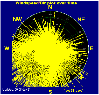 Maximum rain per minute = 2.1 mm on day 08 at time 12:14